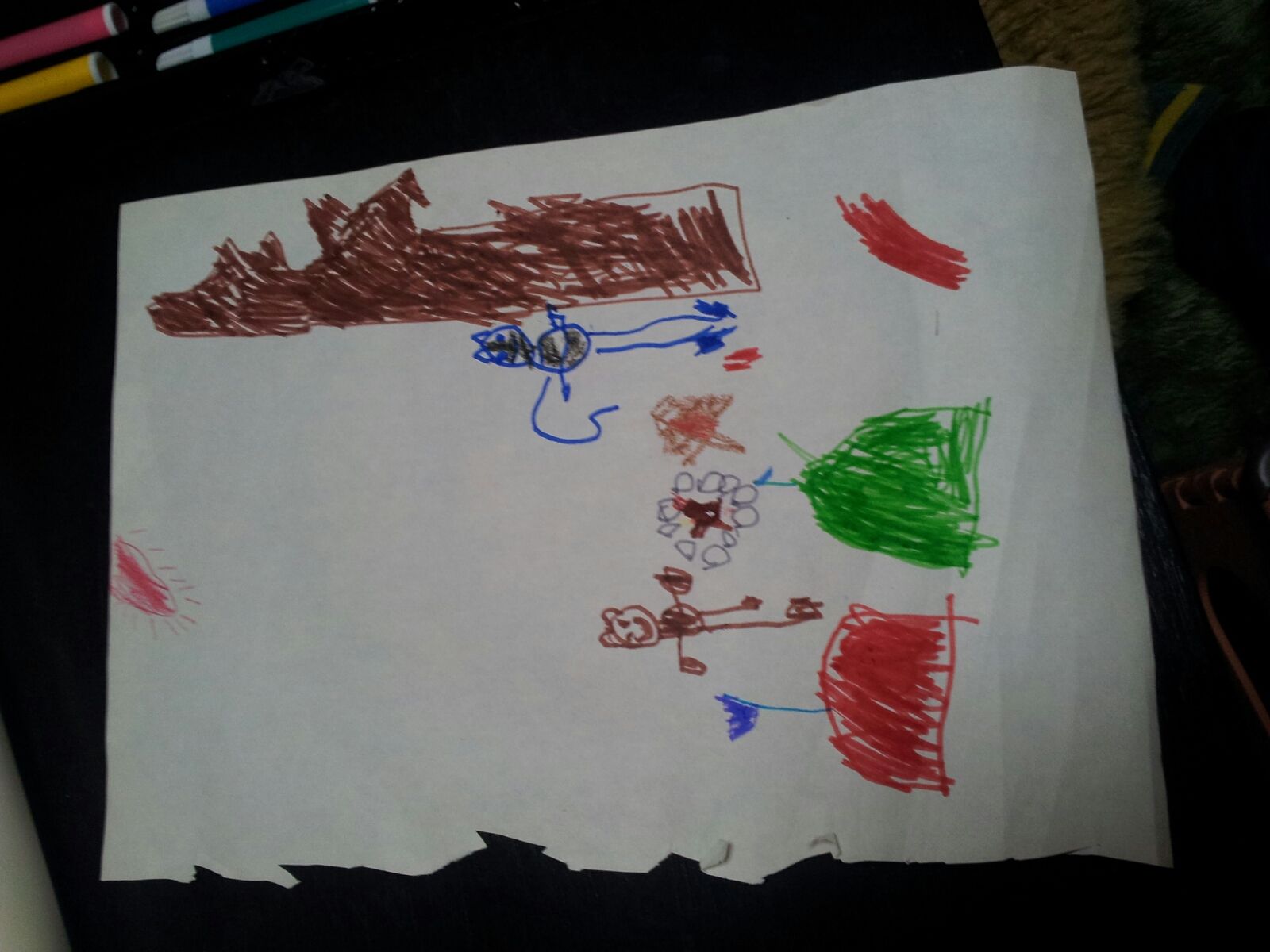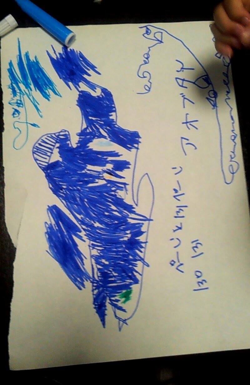 悠風がパパも描けというので、気の向くままに描いたのですが、「ねえ、これなに?」「ねえねえ、これなに?」と一番聞かれたくないことをたくさん聞かれました。