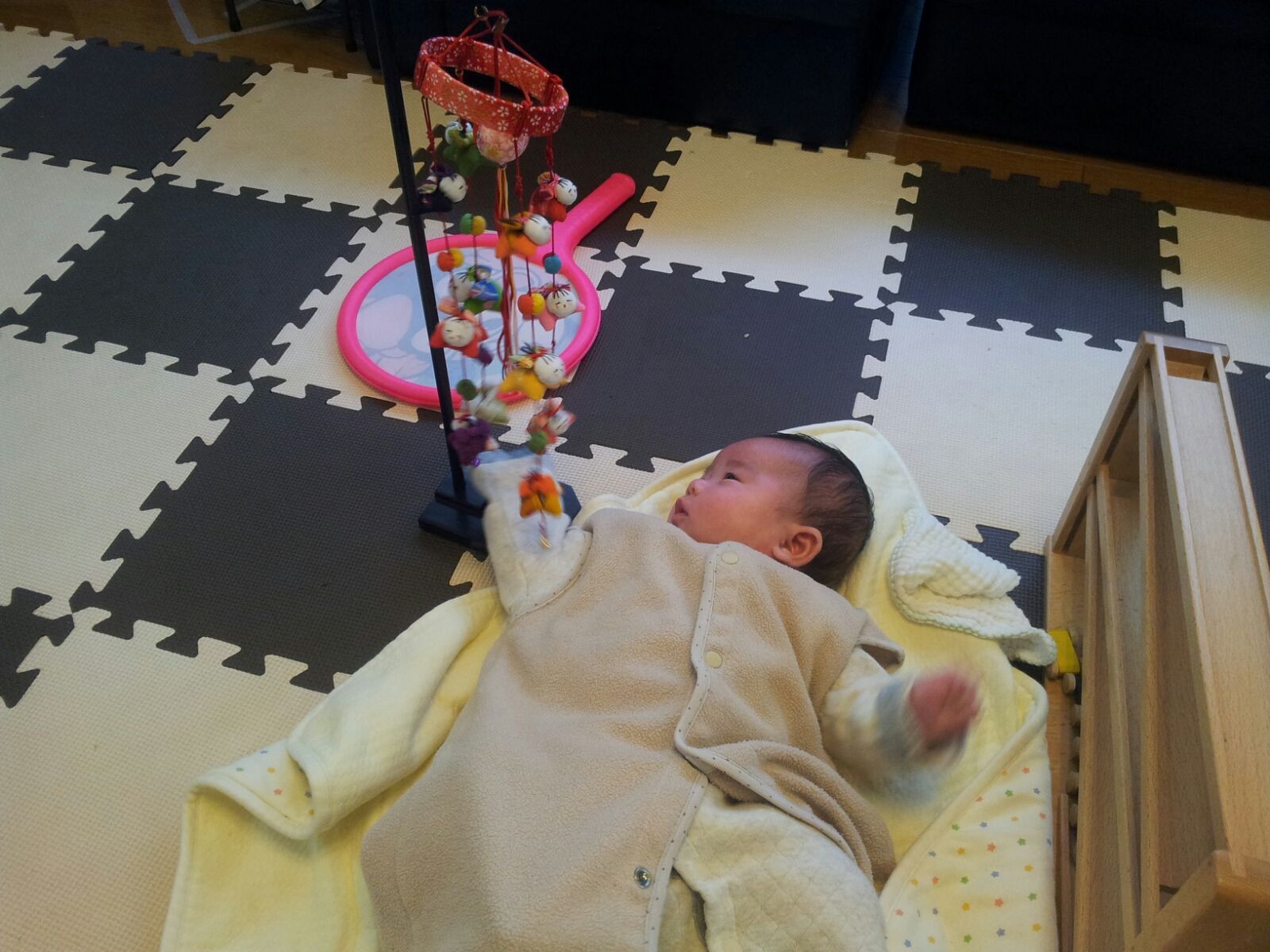 雛飾りを触って揺らすのがお気に入り。