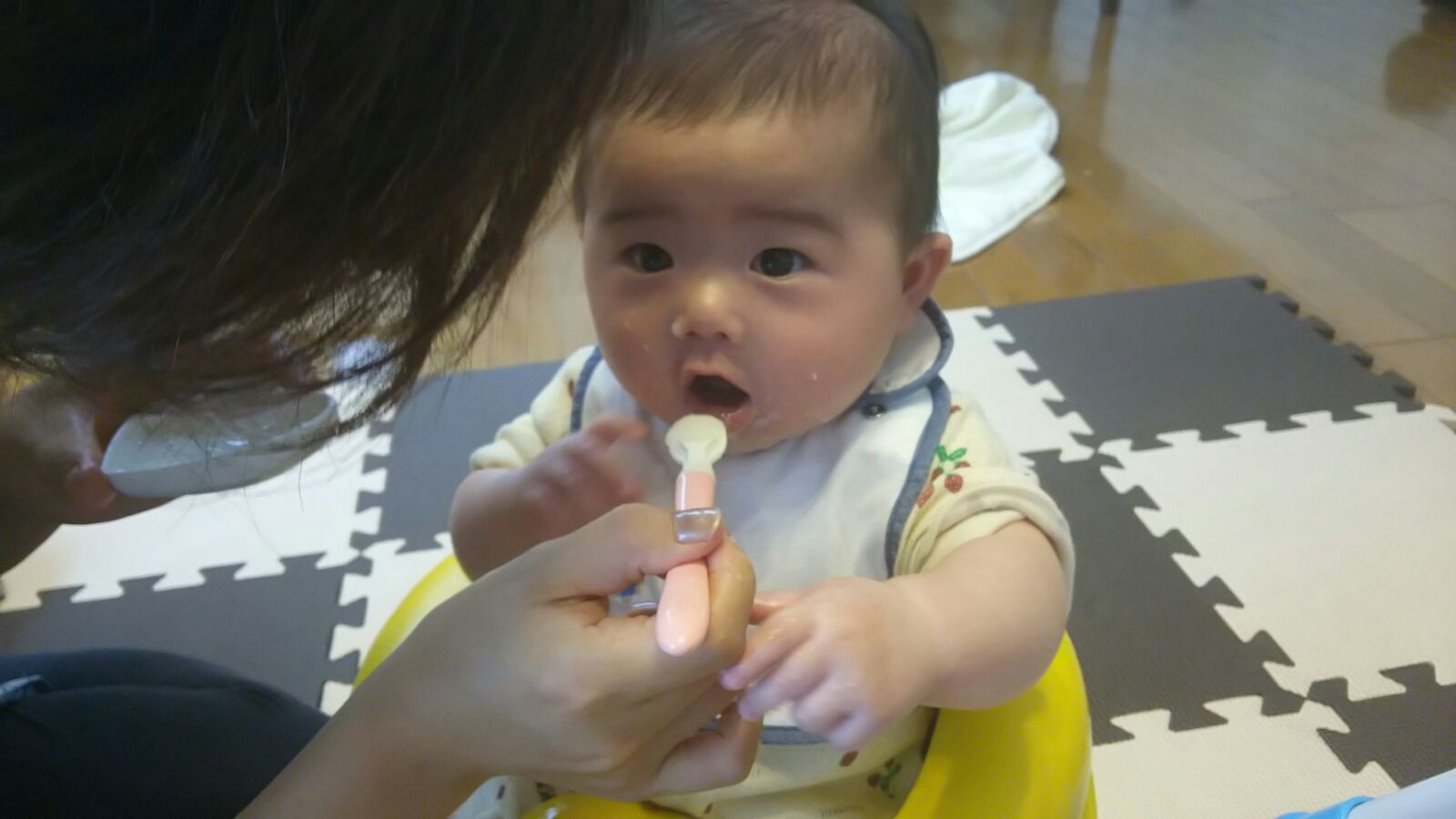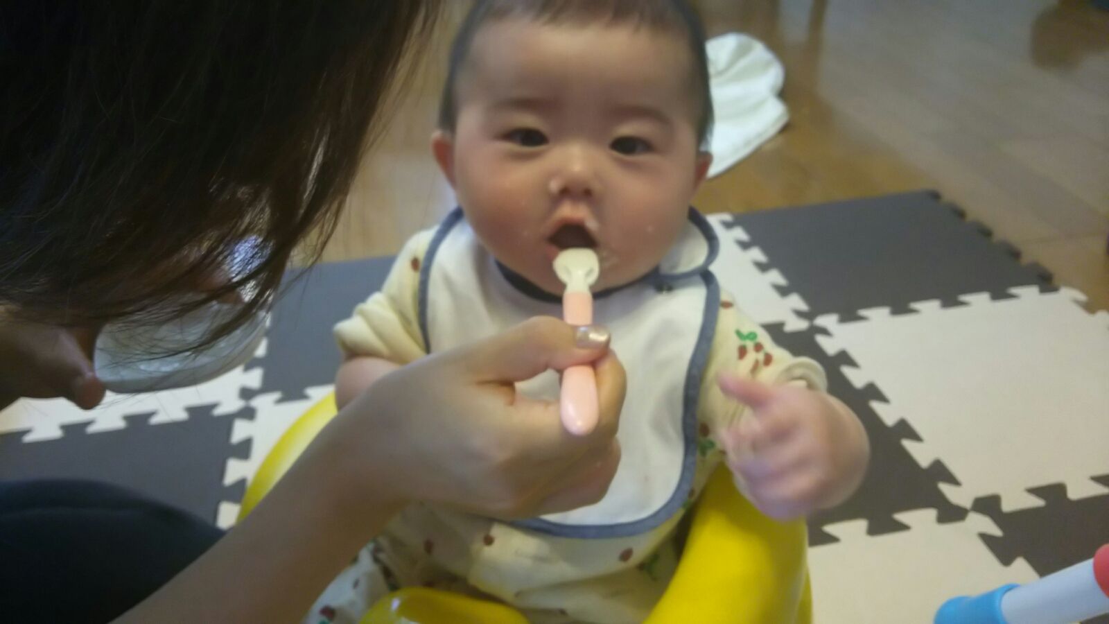 我々が食事をしているのを見ながら、愛用の椅子の肘掛けをバンバン叩きヨダレをダラダラ流しているので、早く仲間入りがしたいのかなと。
