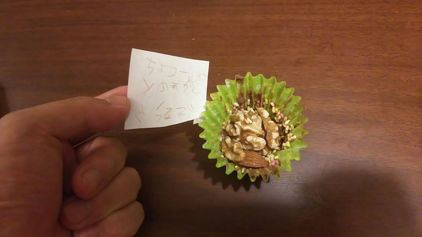 チョコを湯煎してトッピングを乗せて固めてくれたそうな。
