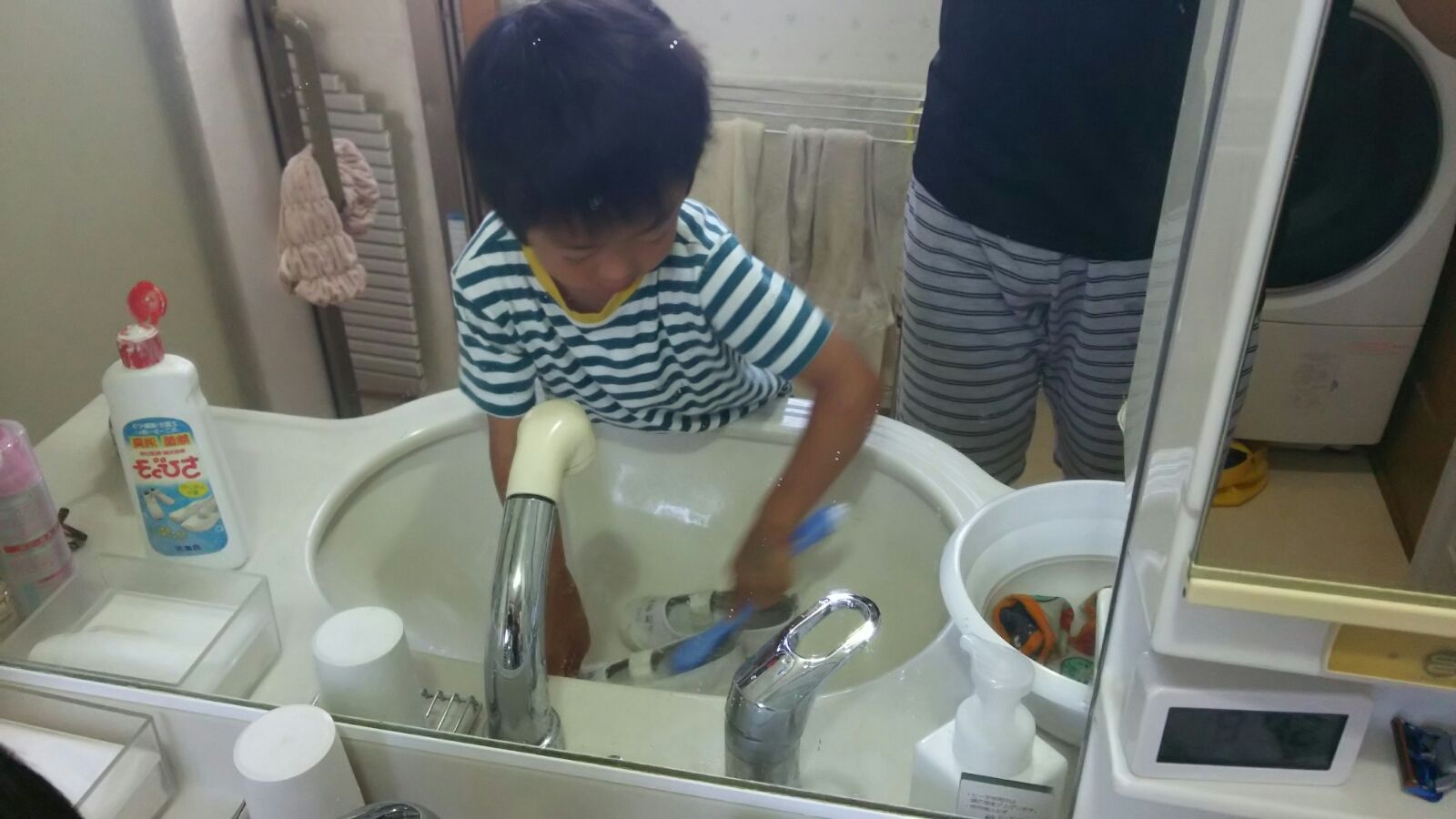 私が自分のサンダルを洗っていたら、悠風が自分の外ばきと内ばきを持ってきて洗うと。