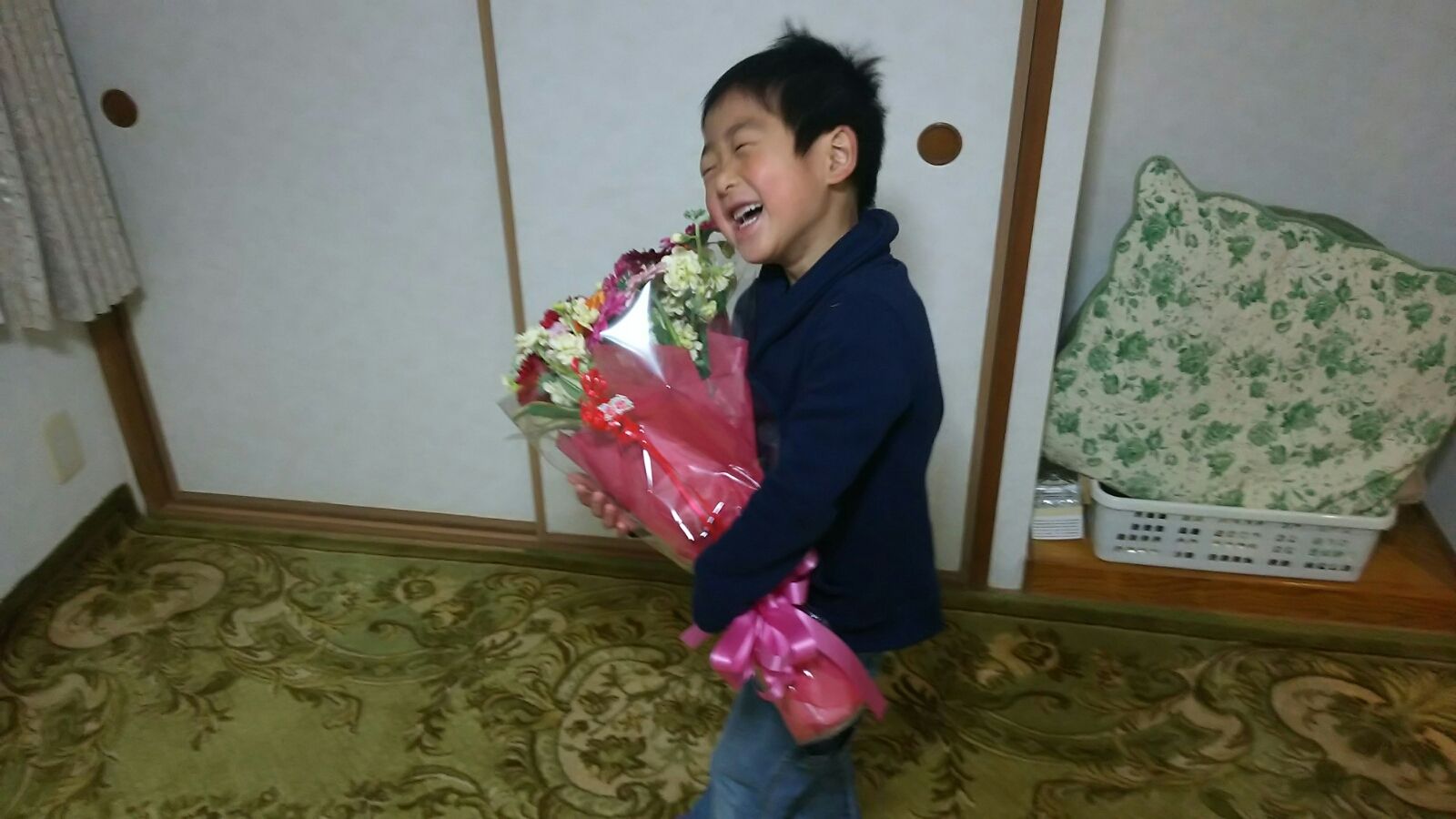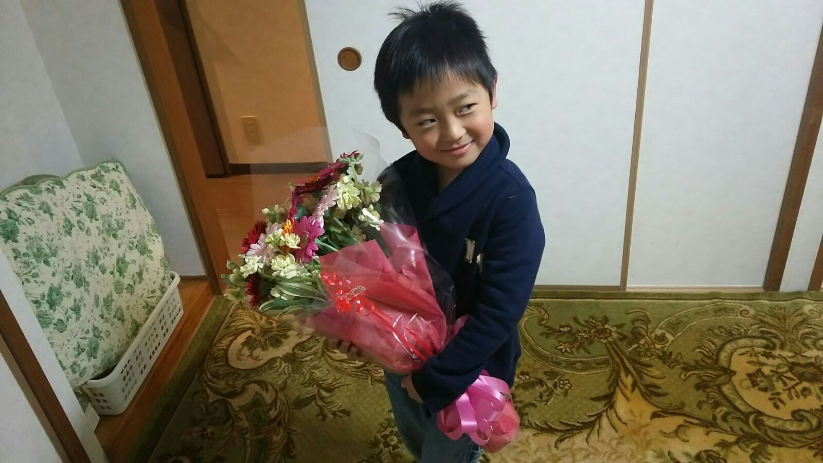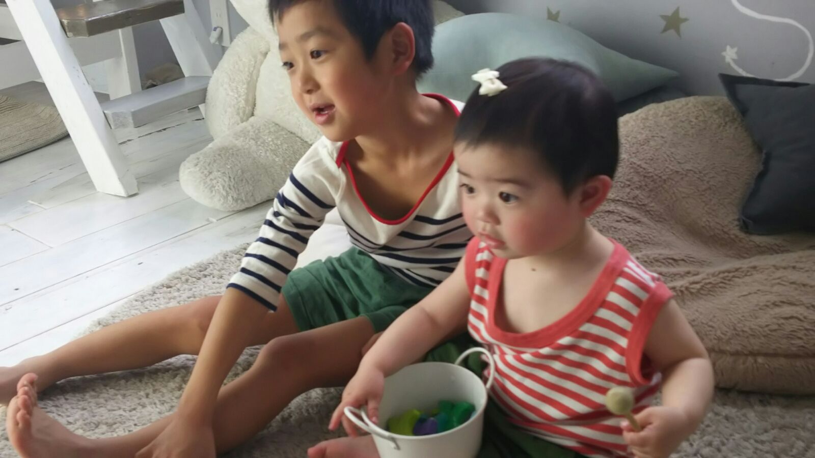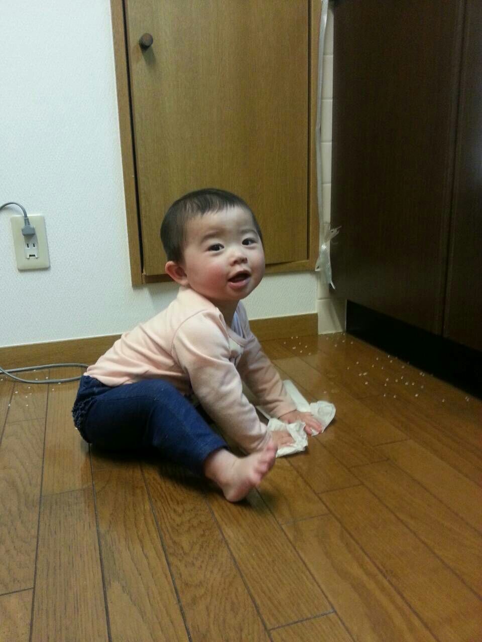わかりにくいと思いますが、床に散らばった米粒を集めて掃除しています。